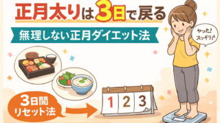 正月太りは脂肪ではなく、むくみが原因のことがほとんど。正月明け3日で体重を戻す、我慢しないダイエット方法と食事の整え方をわかりやすく解説します。