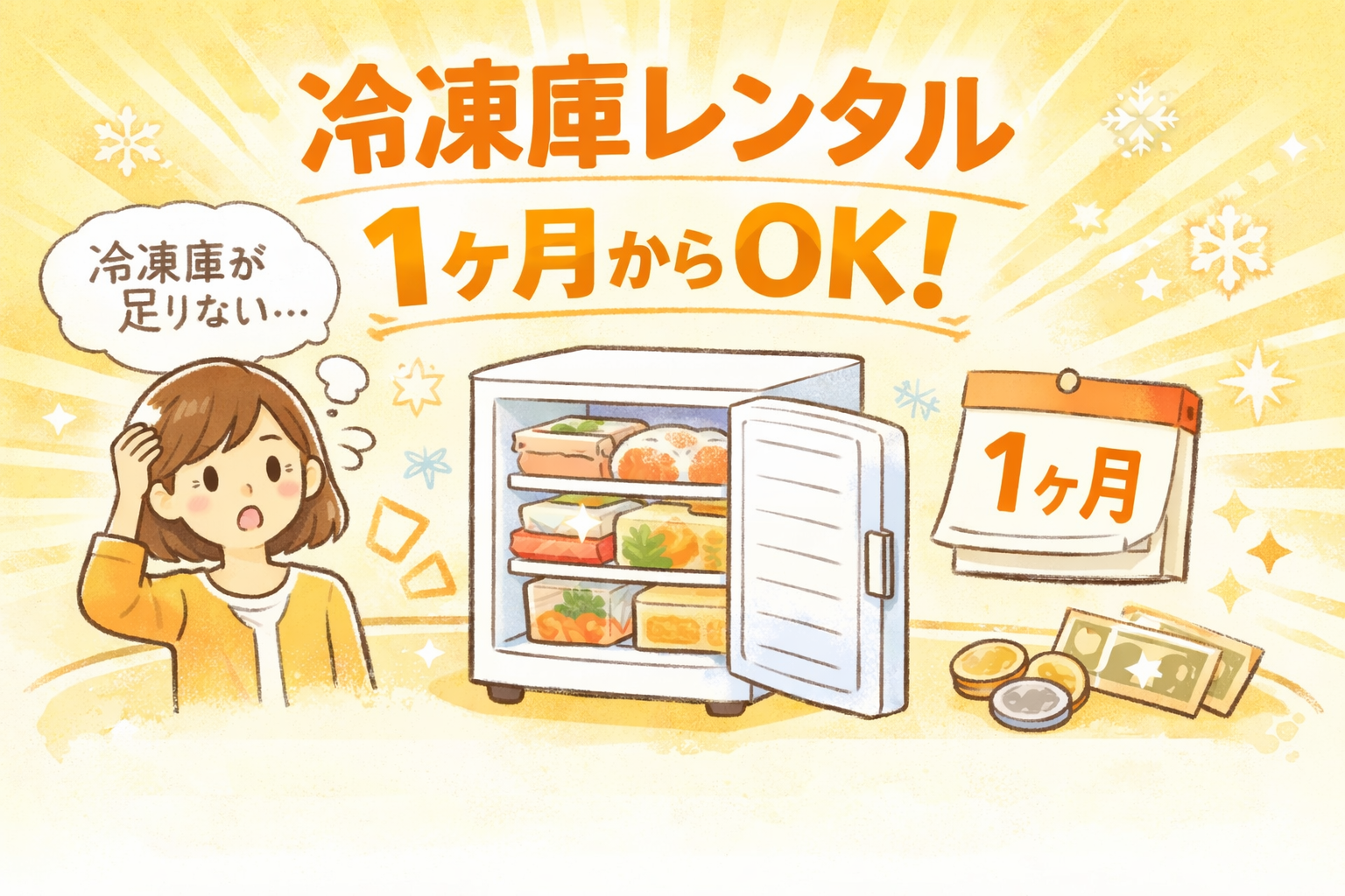 冷凍庫が足りないと感じたら、まずは1ヶ月だけレンタルしてみるのも一つの方法です。
